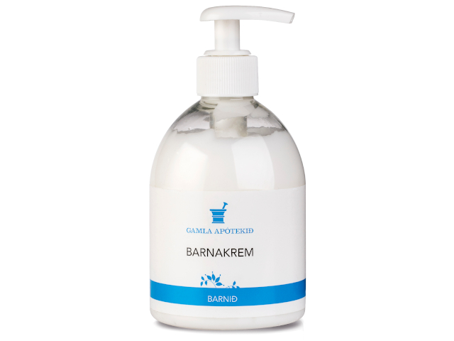 Milt krem sem gefur mikinn raka, er ekki feitt og fer því vel inn í húðina. Barnakremið má bera á allan barnslíkamann, líka andlit. Hentar vel á þurra barnshúð vegna kulda og hita. Mælum með barnakreminu eftir útiveru í sól til að viðhalda raka barnshúðarinnar.