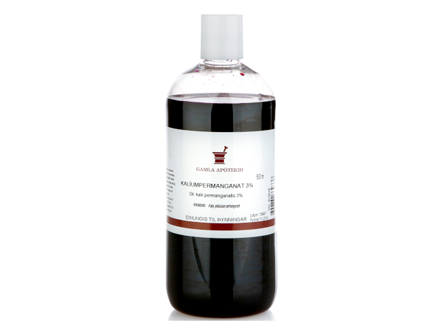 3 ml kalíumpermangant 3% lausn í 1 líter af volgu vatni.