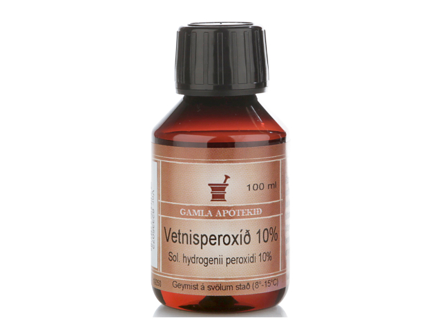 Sol. hydrogenii perxidi 10%. Ætandi, berist efnið á húð skal skola strax með miklu vatni. Má ekki tæma í niðurföll. Veldur alvarlegri augnertingu.